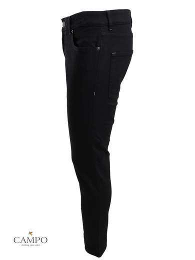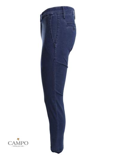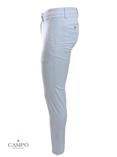 Pantaloni Siviglia in Denim stretch. Leggero effetto stone wash. 5 tasche. Chiusura con bottoni. Etichetta in pelle sul retro.
